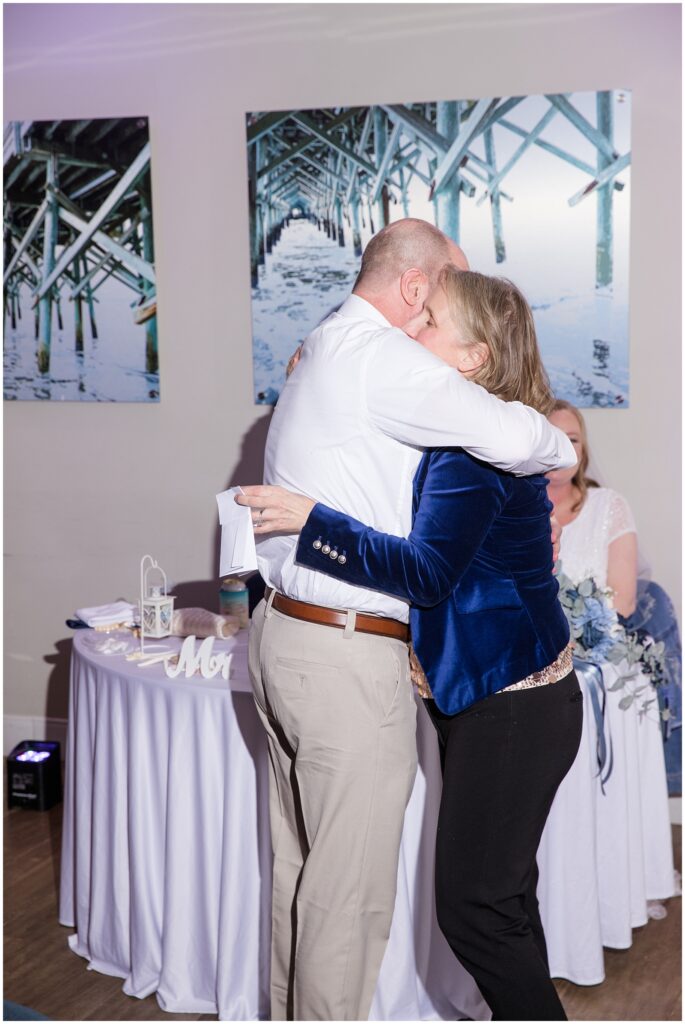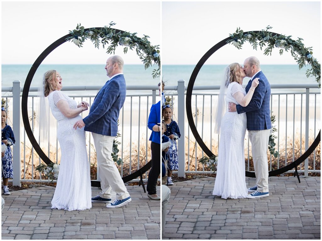Tom and Kim tied the knot at the Holiday Inn in Surfside Beach, SC, surrounded by about 50 of their closest friends and family. It was a little chilly, but the sun showed up in a big way, giving us the perfect light for some beautiful beach photos.